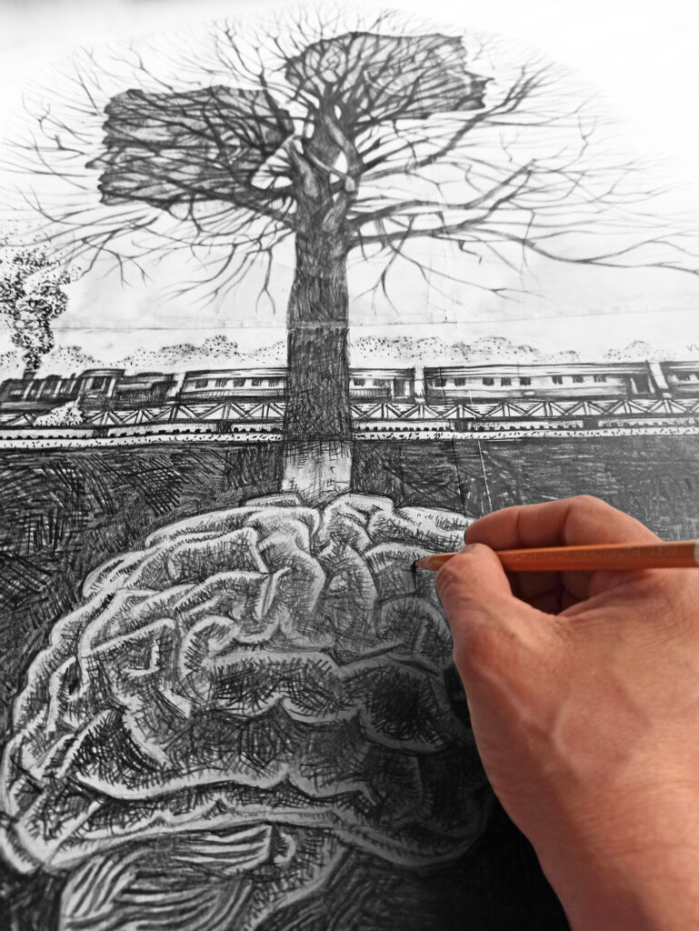 Na język plastyczny przekłada się to w ten sposób, że charakter moich ilustracji zależy od momentu, w którym powstawały, od bodźców, które wtedy na mnie oddziaływały, i od tego, w jaki sposób inspirowała mnie specyfika czytanego tekstu. Wszystko to sprawia, że jedne rysunki są bardziej delikatne, oniryczne i pełne szczegółów, a inne – twarde, techniczne i uproszczone w formie.